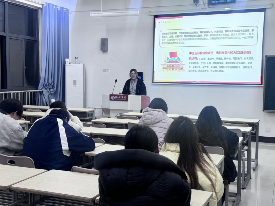 主题团课筑防线,明辨是非守初心。各团支部以主题团课为依托,将理想信念教育与抵御和防范宗教向校园渗透等内容深度融合,通过案例剖析、政策解读、互动研讨等形式筑牢思想根基。马克思主义学院2024级思想政治教育1班团支部开展 “筑牢思想防线,抵御宗教渗透”主题团课,以短视频《校园里的“温柔陷阱”》导入,剖析校园传教的隐蔽手段与本质危害,解读相关法律法规,组织团员研讨校园传教防范技巧并发起签名倡议,强化行动自觉。艺术与教育学院2025级学前教育1班、2 班团支部联合开设特色团课,组织团员围绕“幼教工作者如何坚守科学信仰、践行育人初心”展开分组研讨,并同步设置“信仰展示墙”,鼓励团员青年亮明信仰、张贴宣言。系列团课帮助广大团员青年进一步筑牢了抵御错误思潮和非法活动的思想防线,大家纷纷表示将自觉抵制各类非法传教行为,坚决维护校园意识形态安全。