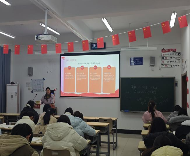 支部大会聚共识,理论武装强根基。各团支部以支部大会为载体,聚焦党的创新理论学习,通过领学宣讲、读书分享、研讨交流等形式推动理论学习入脑入心。材料与环境工程学院2025 级金属材料工程团支部召开“青春向党,信仰领航”主题支部大会,集中学习党的二十届四中全会精神,围绕信仰引领奋斗、青年投身强国实践等议题开展分组研讨,团员结合专业学习与实践经历分享感悟,凝聚奋进共识。马克思主义学院2024级思想政治教育1班团支部举办“品读经典悟初心,青春奋进担使命”主题支部大会,组织团员共读《习近平与大学生朋友们》《习近平的七年知青岁月》等红色经典著作,紧扣思政专业特色就“学习成果转化为使命担当的实践路径”展开交流,引导团员在思想碰撞中明晰方向,以理论学习指导实践行动。